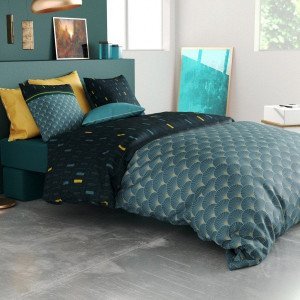 PARURE DE COUETTE PERCALE HIRA BLEU