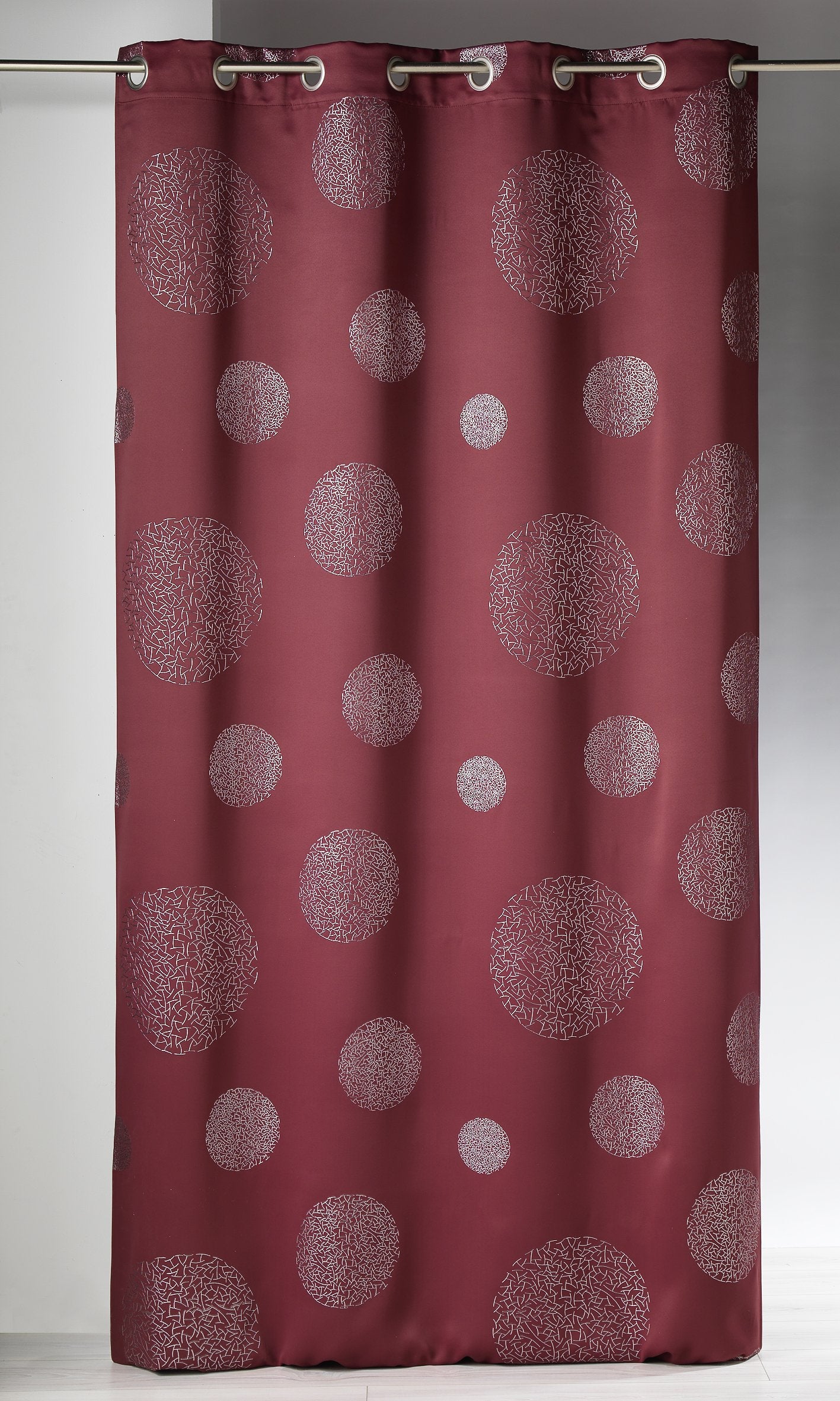 Rideau d'ameublement Bordeau avec motif rond thermocollé argent
