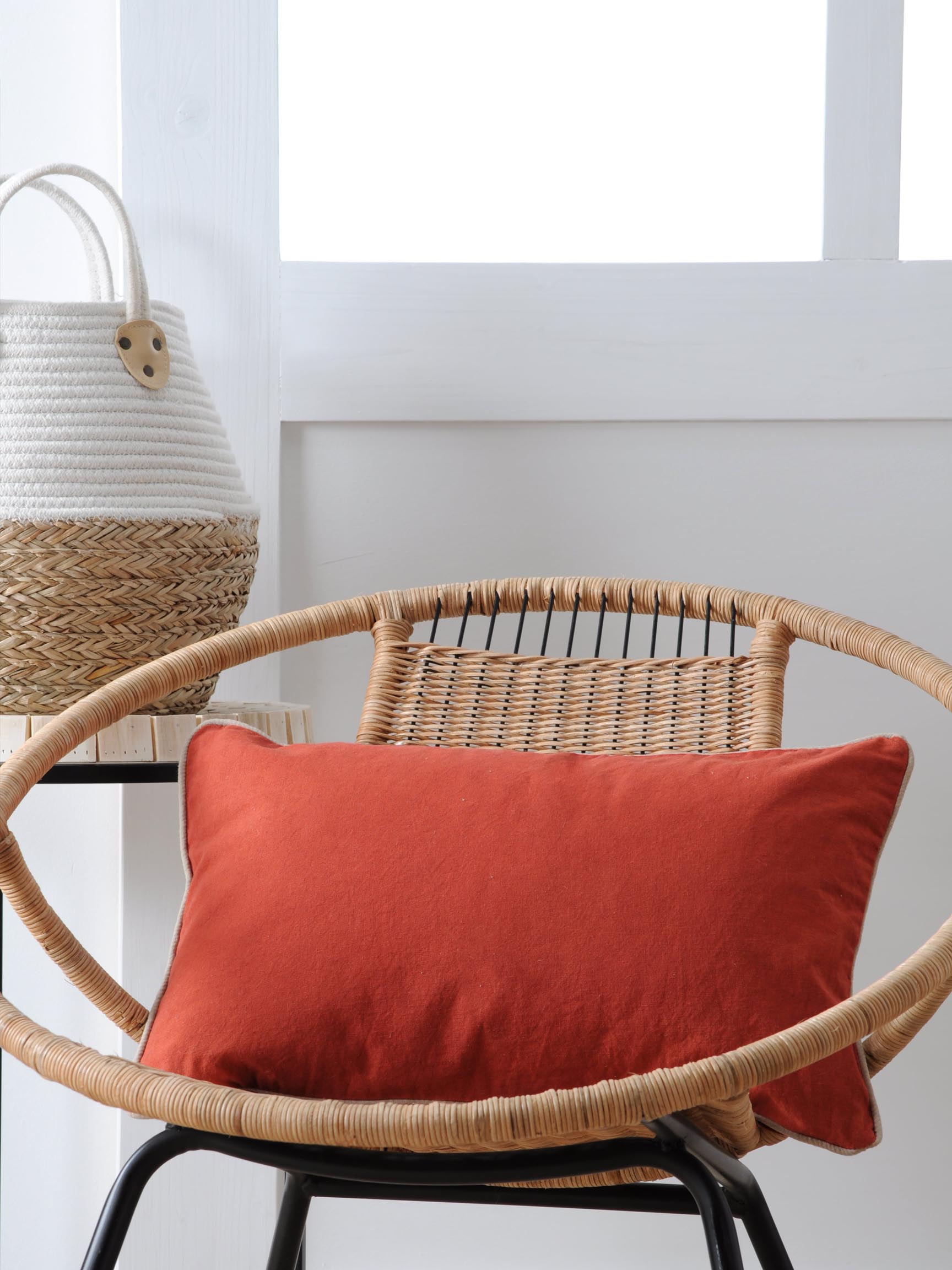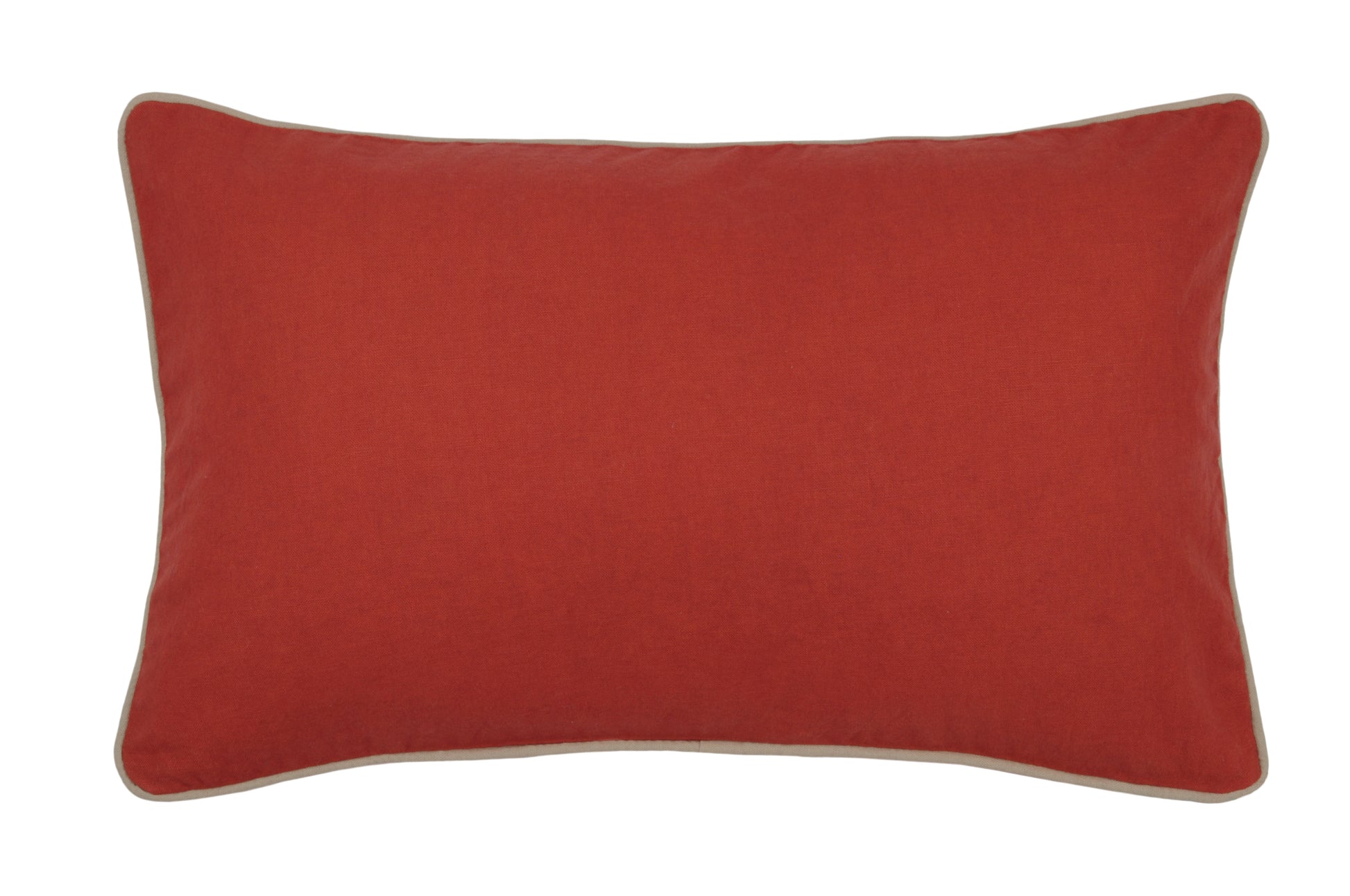 Le coussin Duo combine la couleur terracotta et le lin dans un tissu de coton de dimensions 30 x 50 cm.