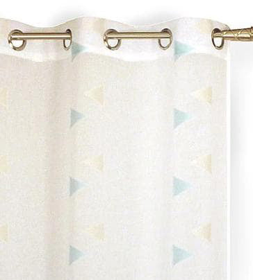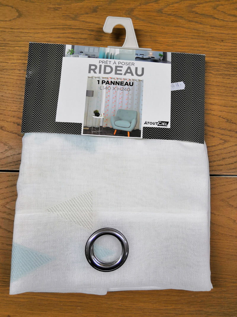 Paire de vitrage KENDJI de 60 x 120 cm. Vitrage blanc contrasté par un triangle gris/bleu en 100% polyester.