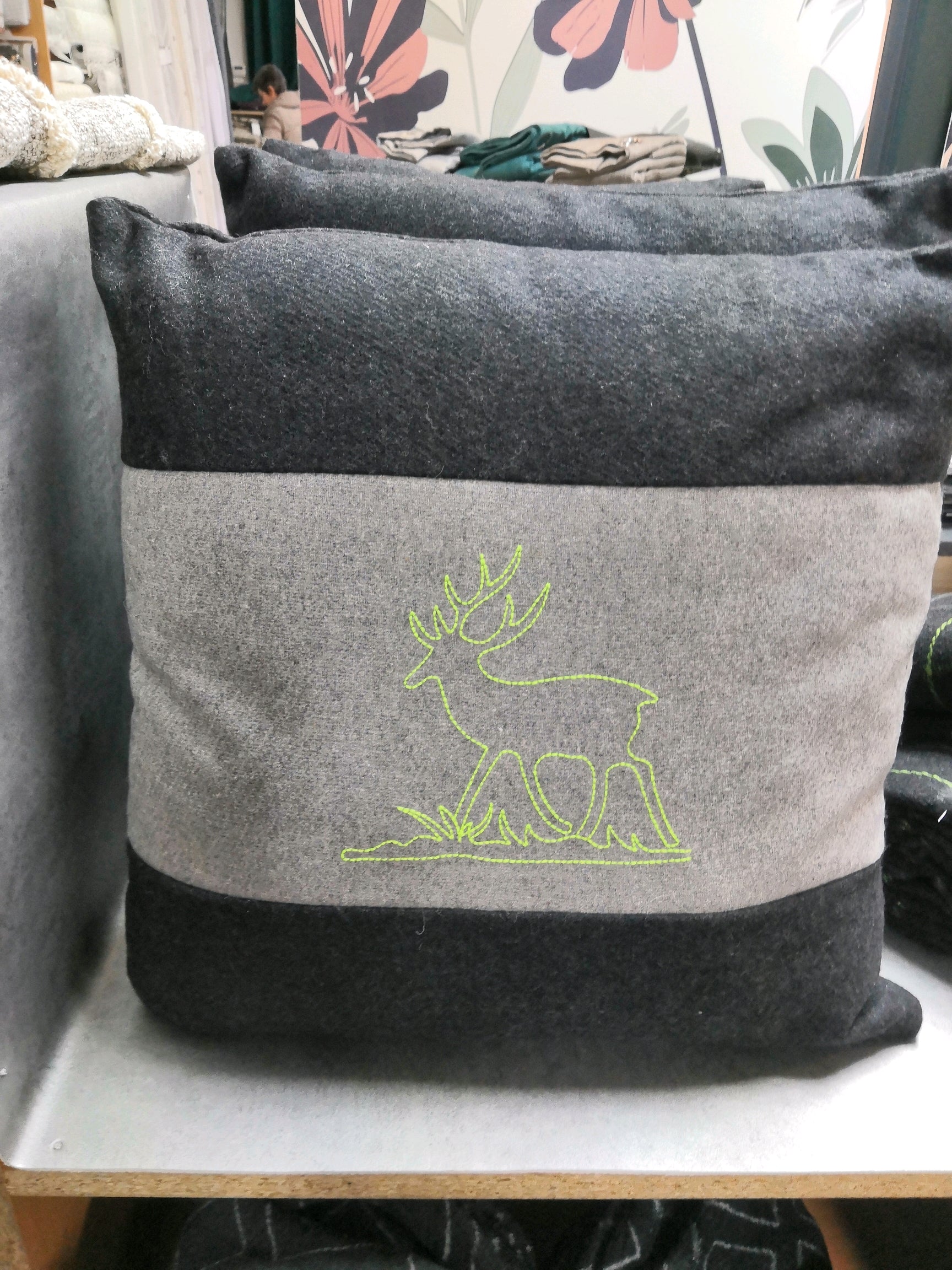 Ce coussin déhoussable de 45 x 45 cm, avec son motif cerf original en tons fluo, apporte une note moderne et dynamique à votre décoration. Sa composition en 65 % laine et 25 % polyester garantit confort, chaleur et résistance, idéal pour créer une ambiance cosy.