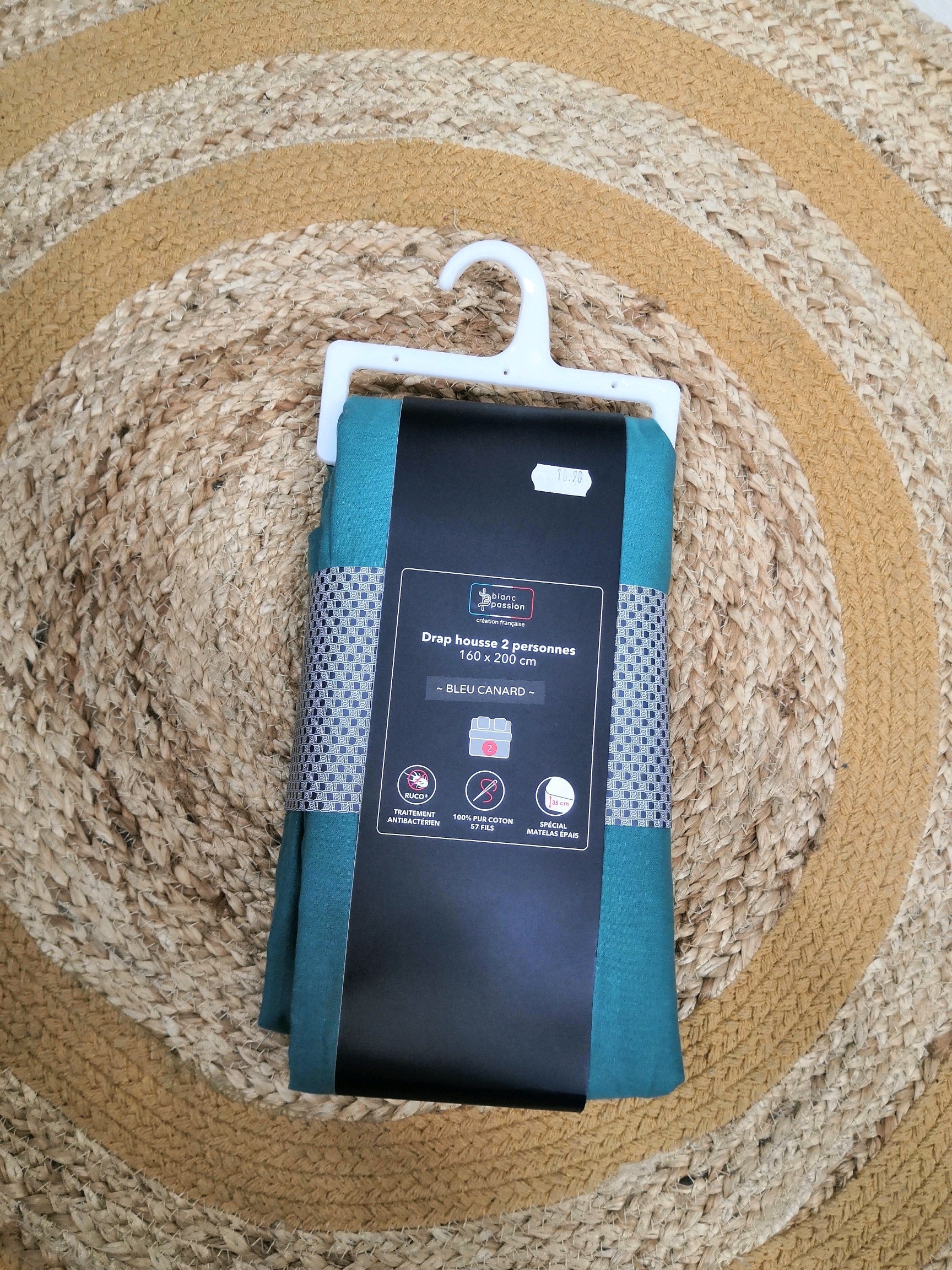 DRAP HOUSSE- BLEU CANARD - 160 x 200 CM