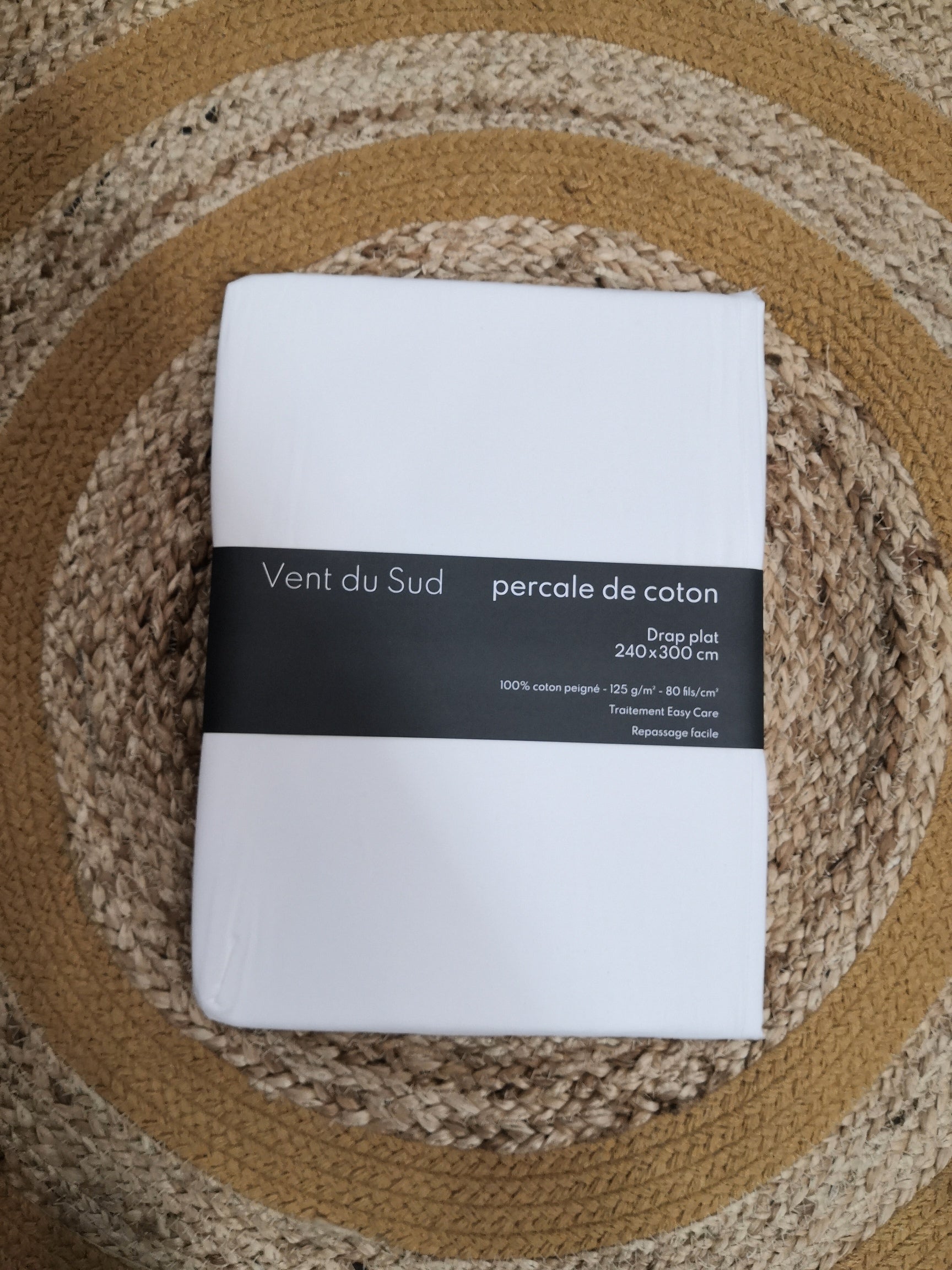 Drap plat MANOIR en percale de coton 80 fils/cm², doux et confortable, il apportera une touche de raffinement à votre chambre.