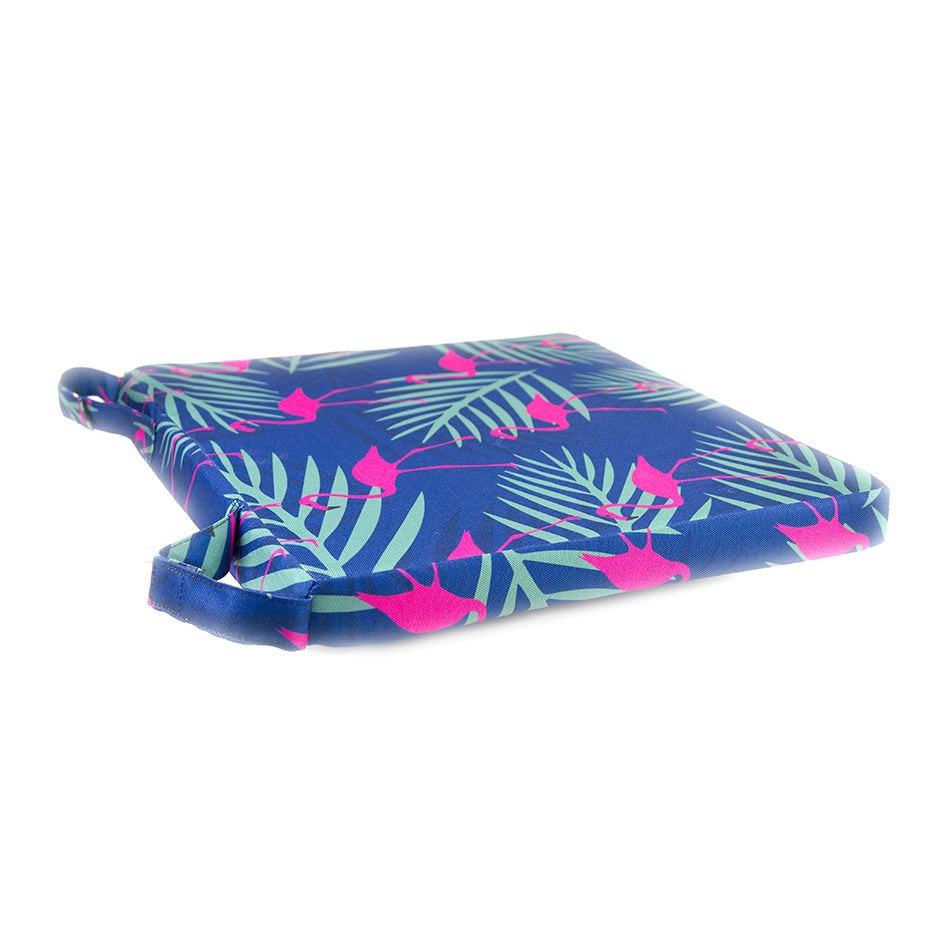 Ajoutez une touche d’exotisme et de fraîcheur à vos assises avec la galette de chaise ADELIE. Son motif feuillage bleu turquoise, sublimé par un flamant rose sur fond bleu marine, apporte un contraste vibrant, parfait pour une ambiance bord de mer ou tropicale.