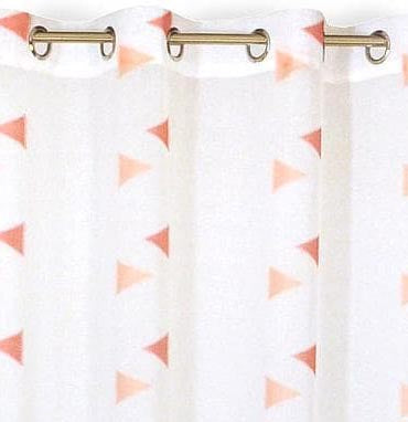 Paire de vitrage KENDJI de 60 x 120 cm. Vitrage blanc contrasté par un triangle corail en 100% polyester.