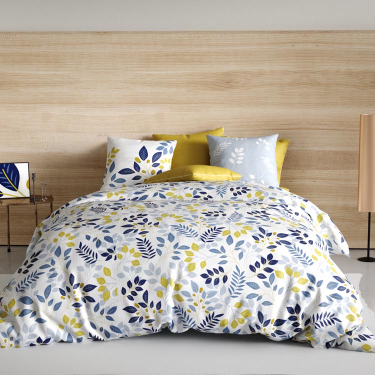 La parure de lit CHLOÉ séduit par son style végétal et fleuri, idéal pour une ambiance douce et naturelle dans la chambre. Fabriquée en 100% coton tissé 57 fils/cm², elle garantit un confort optimal et une excellente respirabilité.