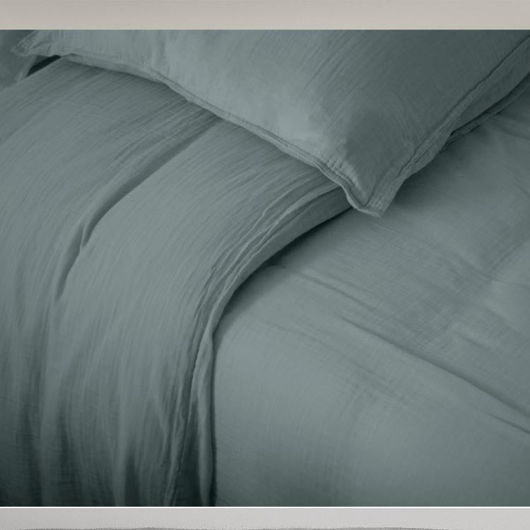 PARURE DE LIT MILOS MOUSSELINE DE COTON 220 x 240 + 2 TAIES LICHEN