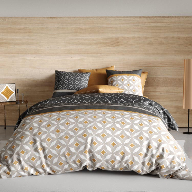 La parure de lit OTA allie qualité et esthétique grâce à sa composition en 100% coton tissé 57 fils/cm², garantissant douceur et respirabilité. Son design à motifs colorés apporte une touche vivante et moderne à votre décoration.