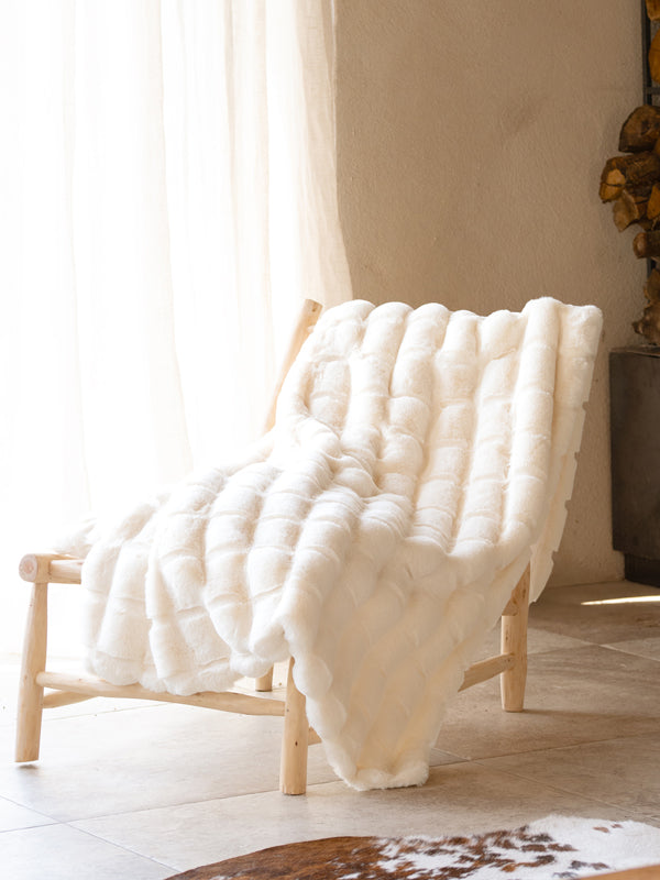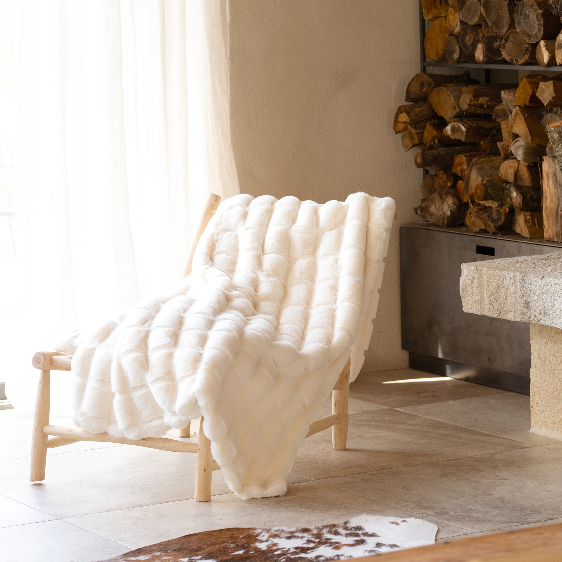 Apportez douceur et raffinement à votre intérieur avec le plaid en fausse fourrure écrue effet 3D. Son motif à carreaux en relief et sa doublure en suédine ton sur ton lui confèrent un aspect chic et élégant. À la fois chaleureux, ultra doux et moelleux, il sera parfait pour vos moments de détente sur le canapé ou en décoration au bout du lit.
