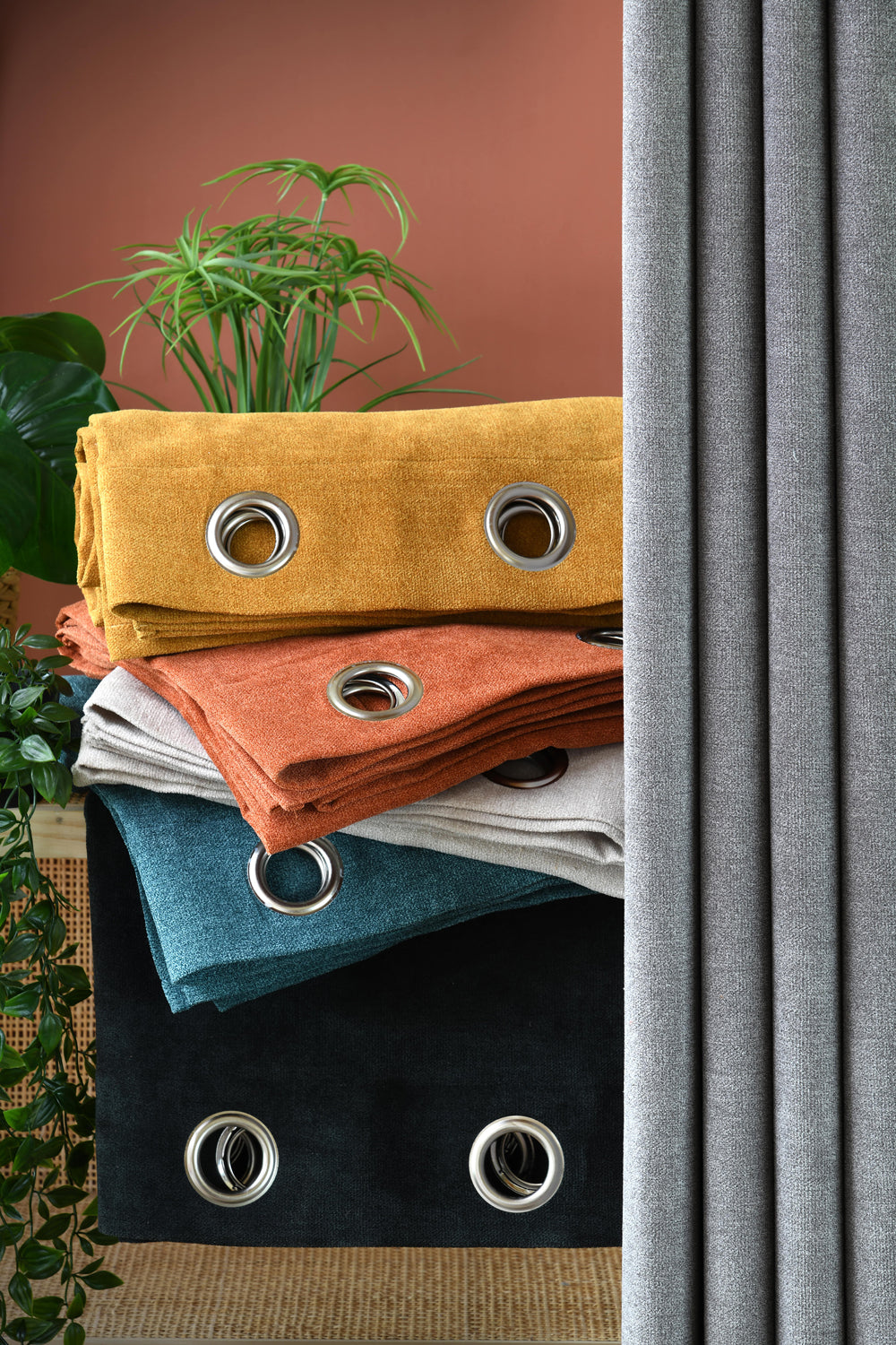 Créez une ambiance chaleureuse et feutrée avec le rideau GRAMMONT. Son tissu épais et son envers noir offrent un excellent confort visuel tout en renforçant l’atmosphère cocon de votre intérieur.