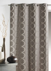 Les rideaux MILA sont conçus pour une installation facile et instantanée. Prêts à poser, ils arborent une teinte taupe élégante rehaussée de dessins ronds argentés qui leur confèrent un style sophistiqué et intemporel. Parfaits pour habiller vos fenêtres avec modernité et raffinement.