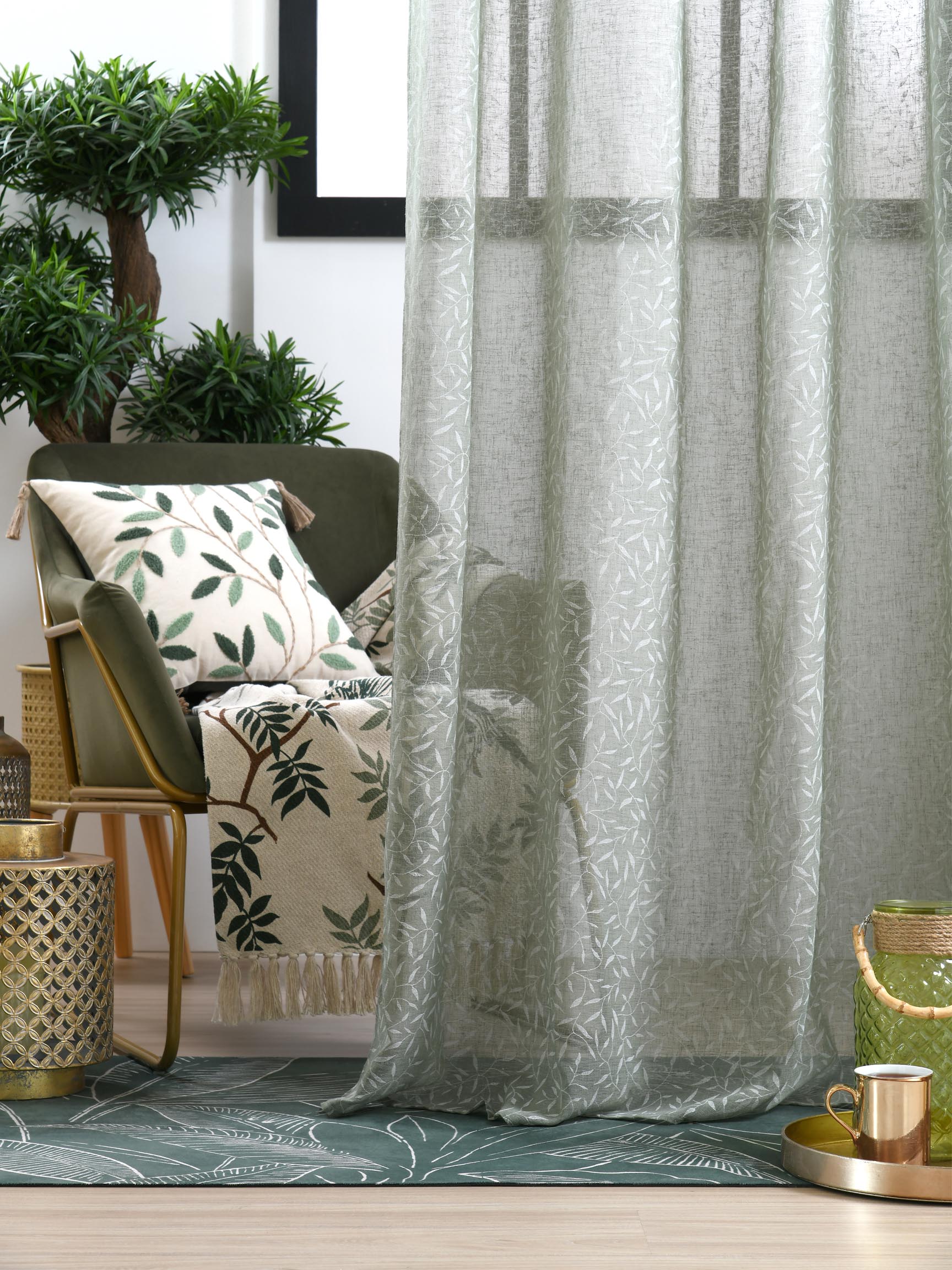 Voilage Vert Sauge à Motif Feuillage – 140 x 260 cm