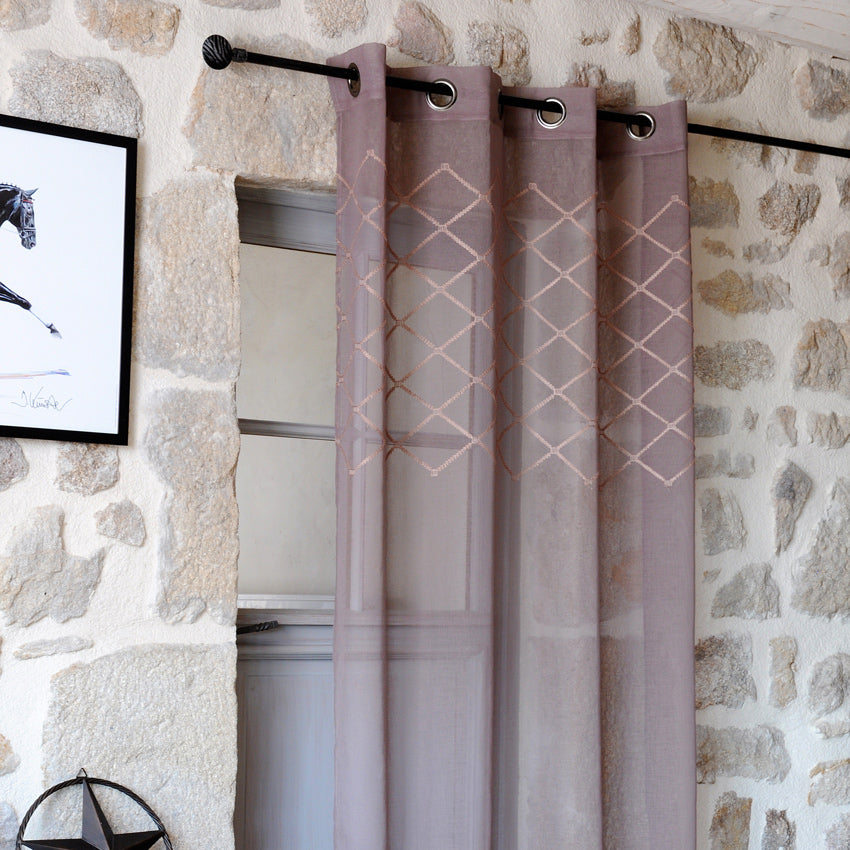 Sa finition haute à œillets métalliques garantit une pose rapide sur tringle et un joli tombé fluide. Léger et semi-transparent, le tissu permet de tamiser la lumière tout en préservant une belle luminosité dans la pièce.